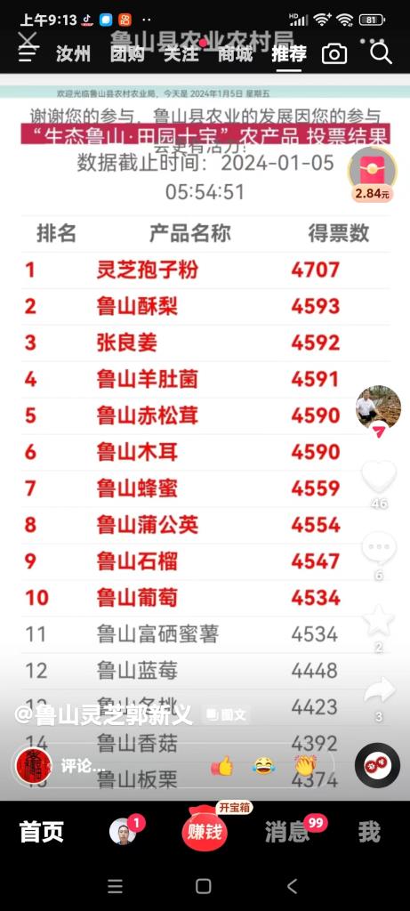 河南省康力加种植有限公司种植的灵芝孢子粉在2023年最热门的鲁山农产品投票选举中荣获第一,获得最高票数。这是郭新义总经理呕心沥血经营的结果,他不但带动邻里致富,还给人们送去了健康和福祉,希望我们的郭总再接再厉,再创辉煌,为人们的健康和幸福更上一层楼!